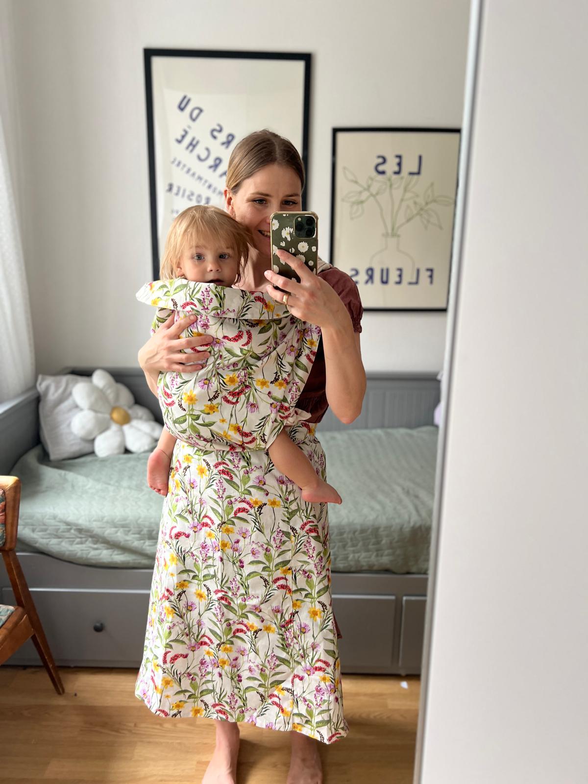 Ten fartuszek to coś więcej niż ochrona przed zabrudzeniem – to sprytne rozwiązanie, które daje Ci swobodę i radość z przygotowywania posiłków, nawet gdy masz dziecko w nosidle lub chuście. Dzięki innowacyjnej konstrukcji możesz unieść dolną część fartuszka i przypiąć ją na napy, tworząc praktyczną osłonę dla maluszka i nosidła. Żadnych plam na ubrankach, żadnych zmartwień – tylko wspólne chwile, które smakują lepiej niż jakiekolwiek danie.