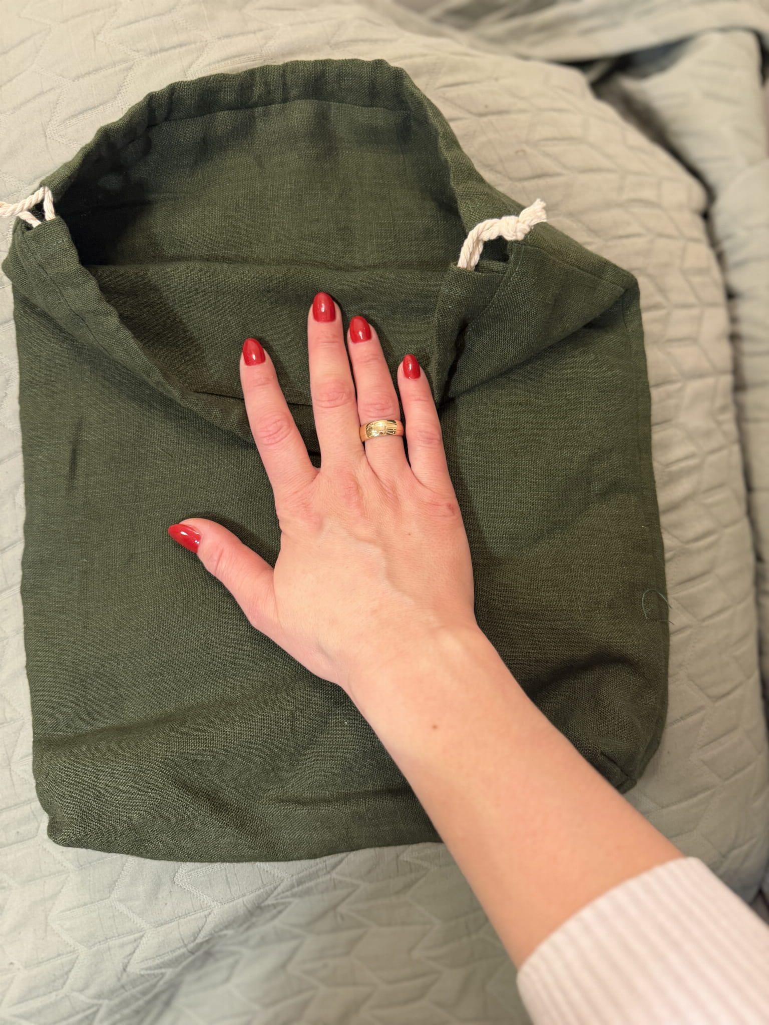 Lniany worek na pieczywo 35x30 cm - zielony